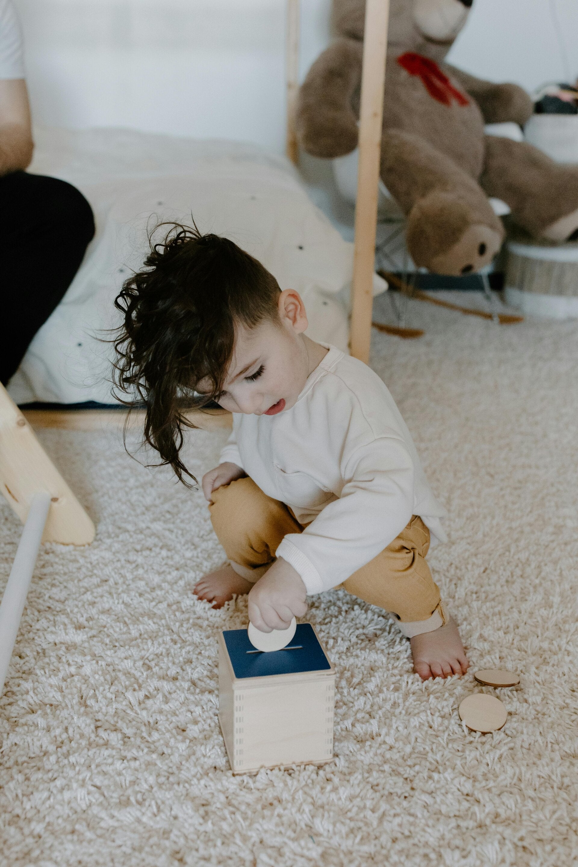 - Cause-and-effect toys (pop-up toys, buttons, busy boards)